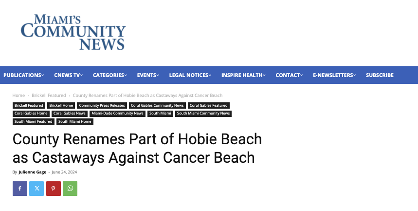 County Renames Part of Hobie Beach as Castaways Against Cancer Beach