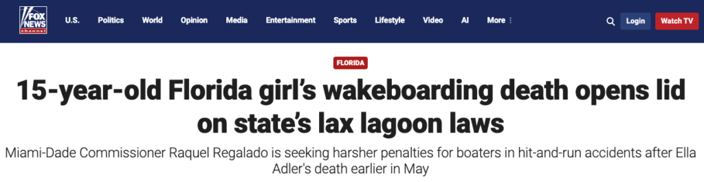 15-year-old Florida girl’s wakeboarding death opens lid on state’s lax lagoon laws